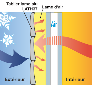 Le tablier de volet roulant isole du froid en hiver. Pour aller encore plus loin, Soprofen a mis au point la lame alu thermique LATH37. Sa laque exclusive, chargée en particules d’aluminium hautement réfléchissantes, permet de réchauffer la lame d’air comprise entre le volet et la fenêtre pour une isolation supplémentaire.